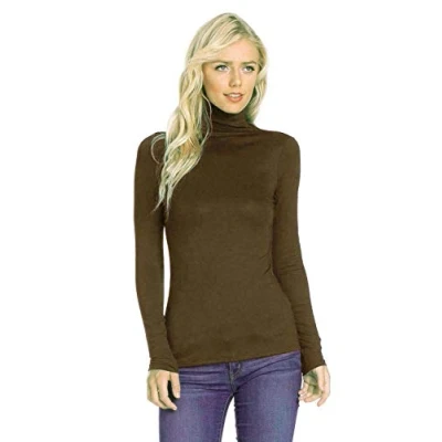 Candid Styles Womens Ladies Polo Roll Neck Long Sleeve Turtle Neck Plain Jumper Top 8 26, XXXL 24-26 Plus Size, Brown…