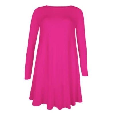 Candid Styles Womens Plain Long Sleeve Stretch A Line Skater Flared Swing Dress Top Plus Size T Shirt 8 26 12 14 Hot Pink