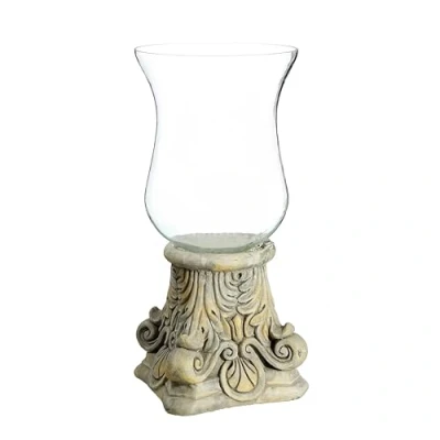 Candle Holder 19.5 x 42 cm Cream Cement Glass