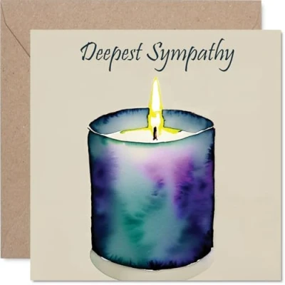Candle Sympathy Card for Women Men Watercolour Mourning Bereavement Cards Adults, 145mm Condolences Thinking of You Greeting