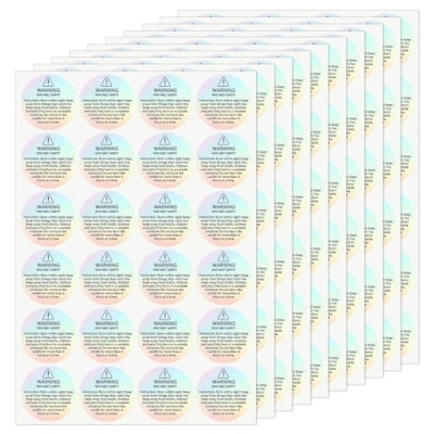 HOLOGRAPHIC: Our candle warning labels are designed with holographic appearance, you will see different color from different position and brightness, attracting people's eyes easily in order to warning people use candle carefully. PREMIUM MATERIAL: Our candle warning stickers use copper self-adhesive sticker and eco-friendly hot glue, which make them easy to paste on the smooth surface and remove. EASY TO USE: Our container sticker is capable to be stock on the smooth and clean surface only, without glue or tapes for help, just peel off the candle jar container label and stick to the surface. SIZE: Each sheet of stickers is 21*15cm with 24 pcs stickers on it, each pcs of stickers is 3cm in diameter, suitable for most container of candles or something. AFTER-SALE: If you have any questions about our container sticker or are not satisfied with it, please feel free to contact us, we will assist you with the best solution as soon as possible.