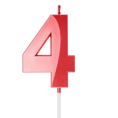 Candles Birthday Cake Candle Topper Number Numeral Red (Metallic 4)