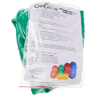 Cando Peanut roll Much easier to control than exercise balls inflatable Saddle Roll 60cm x 110cm green 36.6 inches high. The Cando inflatable rolls are much easier to control than exercise balls because motion is limited to the forward and backward rotation. These colorful inflatable molded heavy-duty vinyl rolls can support up to 600 pounds. Rolls aid in developing muscles, coordination, and balance. Further, the “saddle” offers extra support for the patient. Rolls also make a great addition to individual physical fitness regimes.