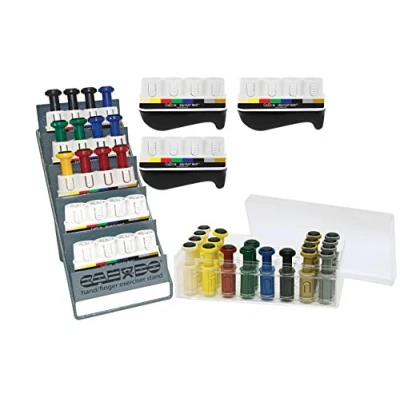 Hand exerciser that develops isolated finger strength, flexibility and coordination while strengthening your forearm muscles at the same time Ideal for therapy, rehabilitation, and also for your effective workout at home or at work Modular system: frames and interchangeable buttons; ergonomic palm bar for comfortable application Interchangeable buttons with 8 different challenge levels available: 0.34 kg/tan, 0.75 kg/yellow, 1.4 kg/red, 2.3 kg/green, 3.2 kg/blue, 4.1 kg/black, 5.0 kg/silver, 5.9 kg/gold wide product range: packs for clinical and personal needs, additional buttons, and boxes