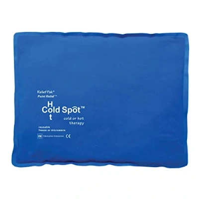 10' X 13" Large Sold in each Easy to Use The heat alleviates back pain, arthritis, sprains and bruises, and sooths a stiff neck The cold alleviates pain caused by injuries, sprains and pulled muscles, cramps, bruises, swelling and tension headaches Has a pleasantly soft material, is skin-friendly, frost-free and washable The non-toxic, non-crystallizing gel means that the pack can be shaped and remains pliable, whether it is heated up or cooled Available the following 7 variations and sizes: neck 17 x 55 cm, round 25 cm, medium 17 x 30 m, small 7 x 12 cm, tri-sectional 20.32 cm x 40.64 cm, large 25 x 33 cm, tri-sectional 20.32 cm x 40.64 cm
