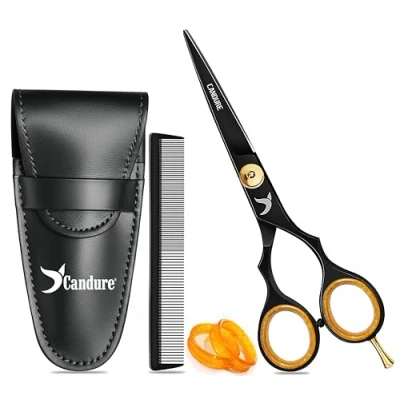 Candure Hairdressing Scissor Hair for Professional Hairdressers Barbers Stainless Steel Cutting Shears Salon, Men, Women, Children and Adults 5.5" Inch Black