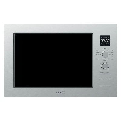 The Candy CA38FL7NWXUK Built-In Microwave with Grill is a 25-litre, stainless steel microwave designed for 38 cm high cabinet openings, featuring multiple cooking functions, a turntable, child-lock, and a reversible door hinge—perfect for modern, streamlined kitchens seeking versatile performance and seamless integration.