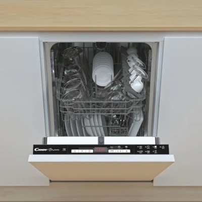 Candy Dishwasher CDIH 2D949 Built in. Width 44.8 cm. Number of place settings 9. programs 7. Energy efficiency class E. Display. AquaStop function. White