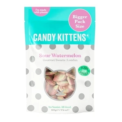 A WALK ON THE WILD SIDE: How wild do you want to be? It's a full on Friday night, end of term & going on holiday kind of wild when you pop one of these badly behaved Candy Kittens sweets in your mouth MASSIVE FLAVOURS: Our Sour Watermelon flavour is so intense vegan sweet lovers have been known to call the kitten police, you know, the kittens that come to check your kitten pulse? IT'S NOT JUST GOURMET FOOD: Get your gourmet on because our vegan kitten sweets are for connoisseur's only, if you love them, you'll be one, whatever it means, we just want you to love them NATURAL, NATURAL, NATURAL: Did we say natural? Packed with yummyness Candy Kittens Sour Watermelon Gourmet sweets have a minimum 10% fruit juice + natural flavouring & colouring WITHOUT THE ARTIFICIALS: Correct, there are no artificial ingredients in the candy kitten sweets, just the wholesome, wholesomeness of the Sour Watermelon juice, juiciness. *Packaging may vary