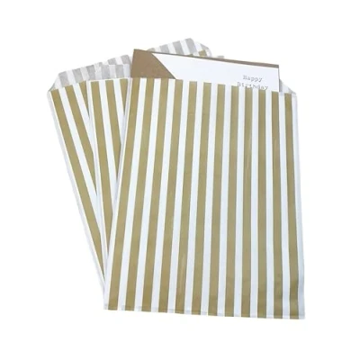 Candy Stripe Gold Sweet Bags 7" x 9"/ 175mm 225mm Pack of 200