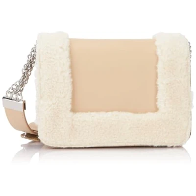 Faux leather shoulder bag With faux shearling trim Flap with magnetic closure Carrying strap with decorative chain links Main compartment with zip