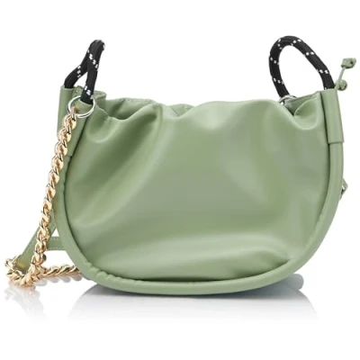 Faux leather bucket bag Trendy bag shape With drawstring and magnetic closure Strong link chain Textile interior