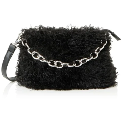 faux fur handbag Made from soft faux leather Zip closure Silver Link Chain Detachable and adjustable shoulder strap
