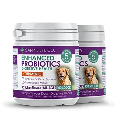✔ WHY BUY CANINE LIFE CO’S ENHANCED DOG PROBIOTICS? – Each tub of 100 grammes of our dog probiotic powder is packed full of 10 different and complementary healthy beneficial live gut bacterium strains that support your dog’s gut microbiome with a total of 5 billion CFUs (Culture Forming Units). ✔ POWERFUL DIGESTIVE SUPPORT FOR DOGS – Our unique blend of 10 strains of live bacteria is further enhanced with Green Lipped Mussel Powder which can stimulate the growth of friendly gut bacteria, and further enhanced with Turmeric which is known for its anti-oxidant properties. ✔ WHAT ARE THE 10 STRAINS OF BACTERIA IN OUR DOG PROBIOTOCS? We use a proprietary blend of 10 Strains of Good bacteria which are - Lactobacillus Acidophilus, Streptococcus Thermophilus, Lactobacillus Rhamnosus, Lactobacillus Plantarum, Bifidobacterium Bifidum, Bifidobacterium Longum, Bifidobacterium Breve, Lactobacillus Casei, Bacillus Coagulans, Bifidobacterium Lactis. ✔ WHY WE USE TURMERIC TO ENHANCE OUR DOG PROBIOTICS - Turmeric's active compound curcumin is a natural anti-oxidant ✔ DOG PROBIOTICS WITH COMBINATION BENEFITS – Good to know that whilst supporting your dog’s gut health it also supports and aids with bloating, gas, your dog’s coat and itchy skin.