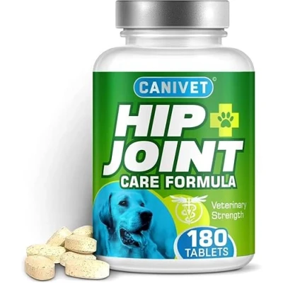 CANIVET dog joint Care Supplements 180 Tablets With Green Lipped Mussel, Glucosamine & Chondroitin, Turmeric, MSM, Hyaluronic Acid, Manganese and Vitamins for care. Aids stiff joints.