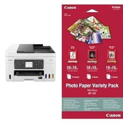 SMALL PRINTER: Print with highly efficient, professional quality with Canon printers for home use & small offices - produce sharp text & vivid colours every time WIRELESS PRINTER: Scan directly to network folders & email for uninterrupted workflows - our compact printer prints business documents at high speeds of 18 ipm (mono) & 13 ipm (colour) FEATURES: Our all-in-one printers feature tilting LCD screen, status light, intuitive UI, 3 way paper feed for multiple paper types, 35-sheet ADF, auto 2-sided printing & a large 250-sheet front casette that avoids time-wasting refills ECONOMIC: Ideal for low to medium monthly print volumes, this compact printer is integrated with ink tanks with MegaTank technology - produce high yields at supremely low cost CANON: This exceptional Canon printer is built to deliver cost-conscious & excellent print quality every time