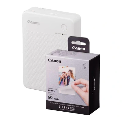 This Canon SELPHY QX20 is perfect for anyone who loves snapping pics and wants to print them on the go. Whether it's for scrapbooks, journals, or just for fun, it prints high-quality photos in different sizes. Your photos will look fantastic for up to 100 years thanks to advanced dye-sublimation printing with a protective overcoat. Use the SELPHY Photo Layout app to add cool stamps, frames, and more to your pics.Good to know- Print directly from your smartphone without any hassle, thanks to easy WiFi connectivity- You can make square prints with XC-20L or try card size prints with XC-60L paper (included)- It's portable and battery-powered, so you can bring it along on trips or print at events