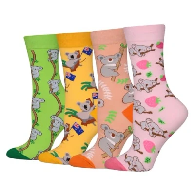 ADDED VALUES – 4 pairs in a pack (Koala socks); Suitable for women EUR 36-40; - Applicable to many occasions: casual, home, work, party, school, office, outdoor, indoor, wedding PERFECT GIFT - Perfect gift for any festival: like birthday, Christmas, Mother's day, Thanksgiving Day HIGH QUALITY: 80% combed cotton, 13% acrylic, 7% spandex; - Soft combed cotton multi-color 200-needle mixed knitting using rich and soft combed cotton for elasticity, anti-skidding, breathability and comfortability - Not thick not thin, good for fall & winter and all year wear COMFORTABLE: 3-dimensional profiling for shape forming and comforts; - Elastic and enhanced cuffs hold socks comfortably in place; they will not dig into your shins; - Perfect for everyday wear, you're set for a more creative outfit