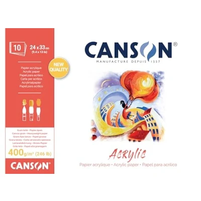CANSON Acrylic, Acrylic Paper, Canvas Grain, 400gsm, Mini PK, 24x33cm, Natural White, 10 Sheets