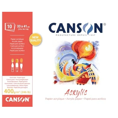 CANSON Acrylic, Acrylic Paper, Canvas Grain, 400gsm, Sheet, 33x41cm, Natural White, 10 Sheets