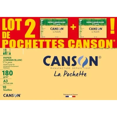 CANSON C à Grain A3 Drawing Paper 180gsm Pack of 2 Pockets 10 Sheets White