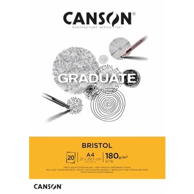CANSON Graduate Bristol 180gsm A4 Paper, Very Smooth, Pad Glued Short Side, 20 Bright White Sheets, Ideal for Student Artists