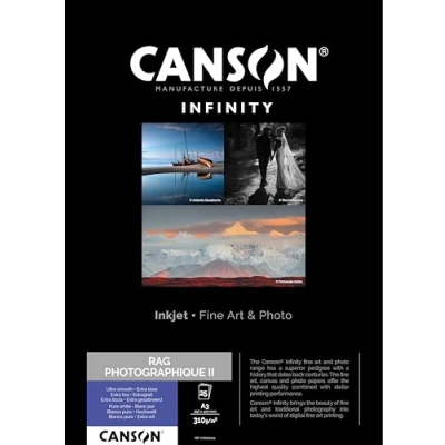 Canson Infinity Rag Photographique, Digital Photo Paper, Ultra Smooth, 310 g, Box, A3 29.7x42 cm, White, 25 Sheets
