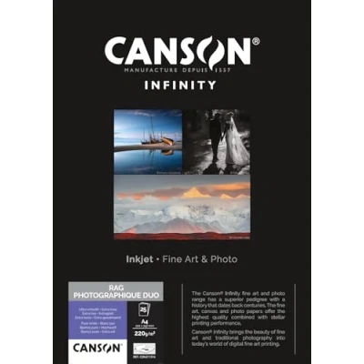 CANSON Infinity Rag Photographique Duo Ultra Smooth 220gsm A4 Paper, Digital Fine Art Reproduction, 25 Pure White Sheets, Ideal for Professional Photographers