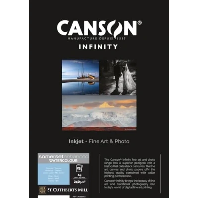 Canson Infinity Somerset Enhanced Watercolour White, Digital Photo Paper, Textured, 240, 89, Box, A4 21 x 29.7 cm, Printed Cardboard 25 Sheets