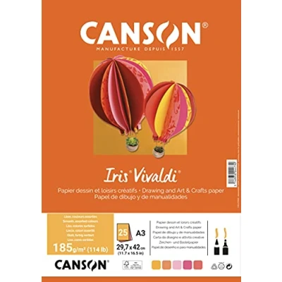 Canson Iris VivaldiA3 Pack of 25 Sheets 185 g/m² Assorted Colours Yellow/Pink/Red