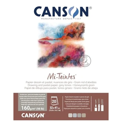 CANSON Mi Teintes Coloured Drawing 160gsm 32x41cm Paper, Double Sided: Honeycomb & Fine Grain, Pad Glued Short Side, 4 Grey Tones, 20 Sheets, Ideal for Professional Artists Illustrators