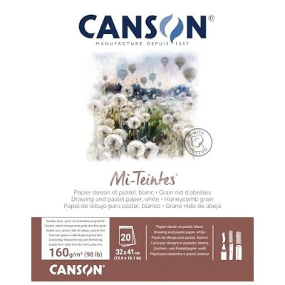 CANSON Mi Teintes Coloured Drawing 160gsm 32x41cm Paper Pad, Double Sided: Honeycomb & Fine Grain, Pad Glued Short Side, White, 20 Sheets, Ideal for Professional Artists Illustrators