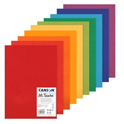 CANSON Mi Teintes Coloured Drawing 160gsm A3 Paper Pack, Double Sided: Honeycomb & Fine Grain, 10 Bright Colour Sheets, Ideal for Professional Artists Illustrators