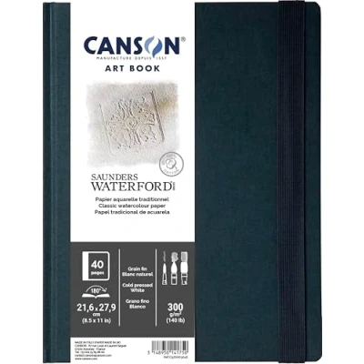 Canson Professional Book, Watercolor Paper, Fine Grain, 300gsm, Stitched Notebook, Hardcover, 8.5 x 11 Inches, White, 20 Sheets
