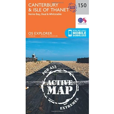 Canterbury & Isle of Thanet Map Weatherproof Herne Bay, Deal Whitstable Ordnance Survey OS Explorer Active 150 England Walks Hiking Maps Adventure