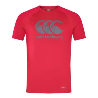 Canterbury Men's Large Logo Superlight T Shirt Training Top Breathable Quick Drying Technical Shirt, Flag Red, L