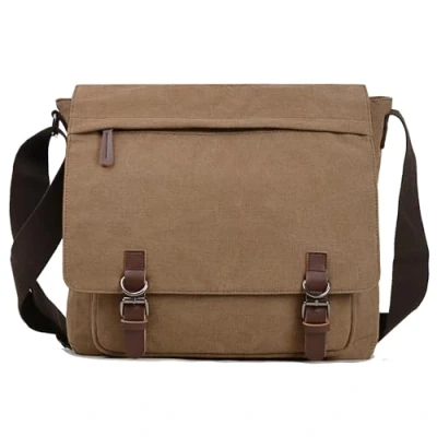 Canvas Messenger bag for Men Women,Travel Satchel Shoulder 15.6 Inch Laptop Bags Business (Coffee)