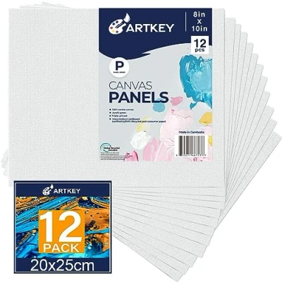 Canvas Panels 20x25cm 12 Pack, 300 GSM Triple Primed Acid Free 100% Cotton Paint for Painting, Blank Flat Board Acrylics Oil Watercolor Tempera