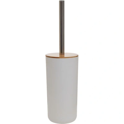 ManoManoGeneral description Made from eco-friendly bamboo wood, this toilet brush features a white finish and comes with a cylindrical holder that exhibits a sleek surface. Its versatile design with white bristles fits neatly in the case, making it an ideal product for home office use.