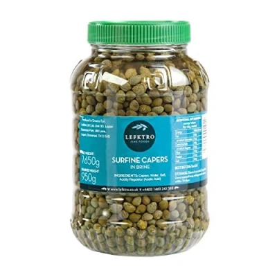 Surfine Capers Product of Greece 7-8MM Size Lefktro Fine Foods Net weight 1.7KG. Drained weight 1KG