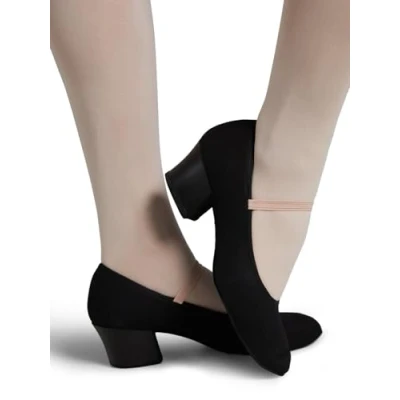 Brushed canvas upper Black suede sole and heel 3/8' Pink elastic strap coordinates with Tights Foam padded Footbed Brushed microfiber lining and sock lining
