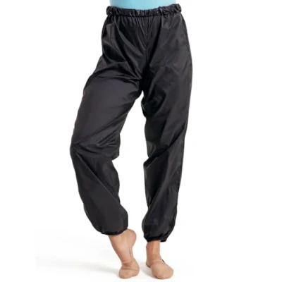 Full length rip stop pants Self-fabric covered elastic waistband Medium inseam length: 31" Self-fabric covered elastic ankle cuffs