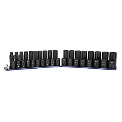 The 1/2 in. Drive Shallow and Deep Impact Socket Set is a collection of most frequently used 1/2 in. drive shallow and deep impact sockets in metric sizes Premium Chrome Molybdenum steel tempered with our proprietary heat treatment process to withstand more torque from power tools Expertly coated with manganese phosphate, the preferred coating in military and aerospace, which offers superior protection and corrosion resistance compared to black oxide coating on other impact sockets 6-point WaveDrive design grips fasteners more tightly than traditional design, preventing fastener rounding and giving you more leverage 36-piece set includes (18) 1/2 in. drive deep impact sockets: 10, 11, 12, 13, 14, 15, 16, 17, 18, 19, 20, 21, 22, 23, 24, 25, 26, 27 mm and (18) shallow impact sockets: 10, 11, 12, 13, 14, 15, 16, 17, 18, 19, 20, 21, 22, 23, 24, 25, 26, 27 mm. Comes with a billet aluminum socket rail made by Westling Machine in the USA, Weight: 17.0 Pounds, Manufacturer: Capri Tools