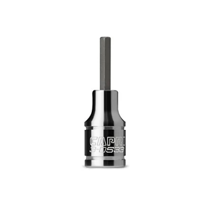 Made for the most demanding professionals, each of our bit sockets is made from custom forged premium steel that underwent proprietary heat treatment and precisely machined to perform in toughest situations Premium S2 steel forged bits are exceptionally strong and durable. These S2 steel bits withstand high torque and do not twist, protecting both the bit and the fastener Chamfered end to ensure a smooth fit onto fasteners Premium Chrome Vanadium steel sockets plated with our SmartKrome protective plating are durable and corrosion resistant Single 1/4 in. drive, 3 mm hex bit socket, Manufacturer: Capri Tools