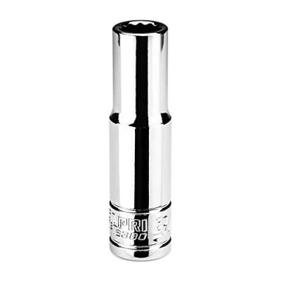 Trusted by professionals, the Capri Tools high performance sockets are what you need for the job at hand Premium Chrome Vanadium steel tempered with our proprietary heat treatment process to withstand more torque Flawless MaxChrome plating, achieved through thorough polishing and careful application of chrome protective plating, ensures durability and corrosion resistance Precise 12-point socket with WaveDrive design grips fasteners more tightly than traditional design, preventing fastener rounding and giving you more leverage Single 3/8 in. drive, 3/8 in. size 12-point deep socket, Weight: 0.15 pounds, Manufacturer: Capri Tools