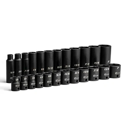 The 3/8 in. Drive Shallow and Deep Impact Socket Set is a collection of most frequently used 3/8 in. drive shallow and deep impact sockets in SAE sizes Premium Chrome Molybdenum steel tempered with our proprietary heat treatment process to withstand more torque from power tools Expertly coated with manganese phosphate, the preferred coating in military and aerospace, which offers superior protection and corrosion resistance compared to black oxide coating on other impact sockets 6-point Wave Drive design grips fasteners more tightly than traditional design, preventing fastener rounding and giving you more leverage 24-piece set includes (12) 3/8 in. drive deep impact sockets: 5/16, 3/8, 7/16, 1/2, 9/16, 5/8, 11/16, 3/4,13/16, 7/8, 15/16, 1 in. and (12) shallow impact sockets: 5/16, 3/8, 7/16, 1/2, 9/16, 5/8, 11/16, 3/4,13/16, 7/8, 15/16, 1 in., Weight: 5.0 pounds, Manufacturer: Capri Tools