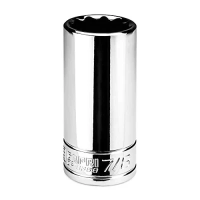 Trusted by professionals, the Capri Tools high performance sockets are what you need for the job at hand Premium Chrome Vanadium steel tempered with our proprietary heat treatment process to withstand more torque Flawless MaxChrome plating, achieved through thorough polishing and careful application of chrome protective plating, ensures durability and corrosion resistance Precise 12-point socket with WaveDrive design grips fasteners more tightly than traditional design, preventing fastener rounding and giving you more leverage Single 3/8 in. drive, 7/8 in. size 12-point deep socket, Weight: 0.4 pounds, Manufacturer: Capri Tools