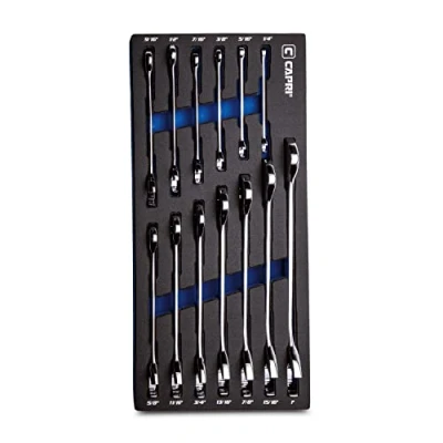 Capri Tools Angle Open End Wrench Set, 30 and 60 Angles, 1/4 to 1 in. SAE, 13 Piece with Mechanic' Tray