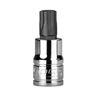 Made for the most demanding professionals, each of our bit sockets is made from custom forged premium steel that underwent proprietary heat treatment and precisely machined to perform in toughest situations Premium S2 steel forged bits are exceptionally strong and durable. These S2 steel bits withstand high torque and do not twist, protecting both the bit and the fastener Chamfered end to ensure a smooth fit onto fasteners MaxChrome plating on premium Chrome Vanadium socket, impeccably polished and finished with careful application of chrome protective plating, ensuring durability and corrosion resistance. Large stamped sizing won't fade over time 3/8 in. drive, TP55 star plus bit socket