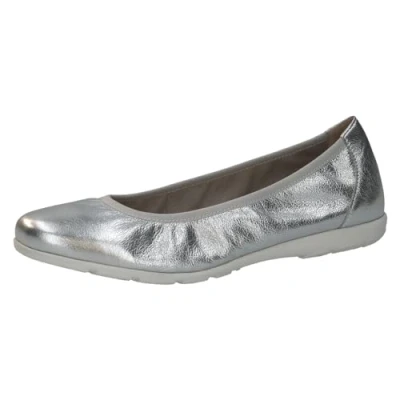 CAPRICE Women' 9 22150 42 Ballet Flat, Silver Metal, 8 UK